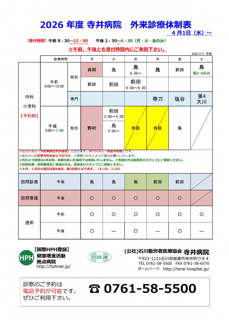 診療体制変更のお知らせ